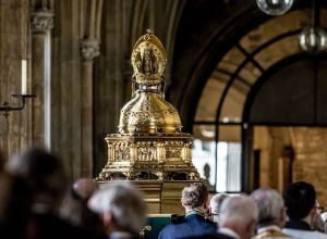 Een jaar voor de officiële opening van de eerstvolgende Heiligdomsvaart Maastricht, trok zaterdag een processie vanuit de Sint Martinuskerk in Wyck naar de Sint Servaasbasiliek in het centrum van Maastricht.